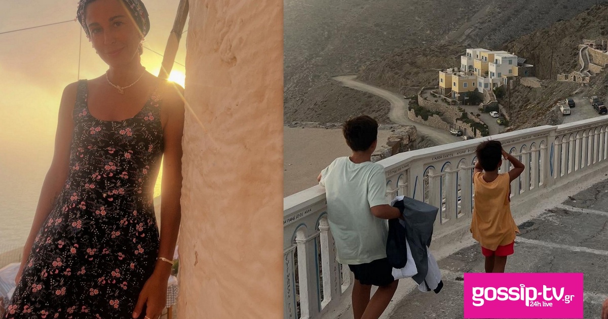 Η Κατερίνα Παπουτσάκη συνεχίζει τις διακοπές της στην Κάρπαθο με τα δυο παιδιά της, Μάξιμο και Κίμωνα, και τον σύντροφό της, Θάνο Χατζόπουλο.