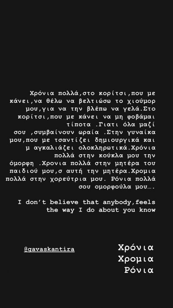 Υ.γ. Ευχαριστώ για αυτές τις ευχές που έρχονται πάντα να μου δώσουν ένα χαμόγελο και ένα δάκρυ» έγραψε χαρακτηριστικά στο Instagram της.